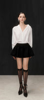 عززي أناقة خزانتكِ مع هذا التوب، الذي يتميز بتصميم فيونكة كبيرة ملفتة تُضفي لمسةً راقية. مصنوع من مزيج حرير فاخر، يوفر هذا التوب ملمسًا ناعمًا ومريحًا، بينما توفر أحزمة الخصر العريضة والأنيقة الدعم والأناقة. مثالي للارتداء مع السراويل ذات الخصر العالي، حيث يجمع بين التصميم الجريء والحرفية الراقية لإطلالة أنيقة واحترافية.
