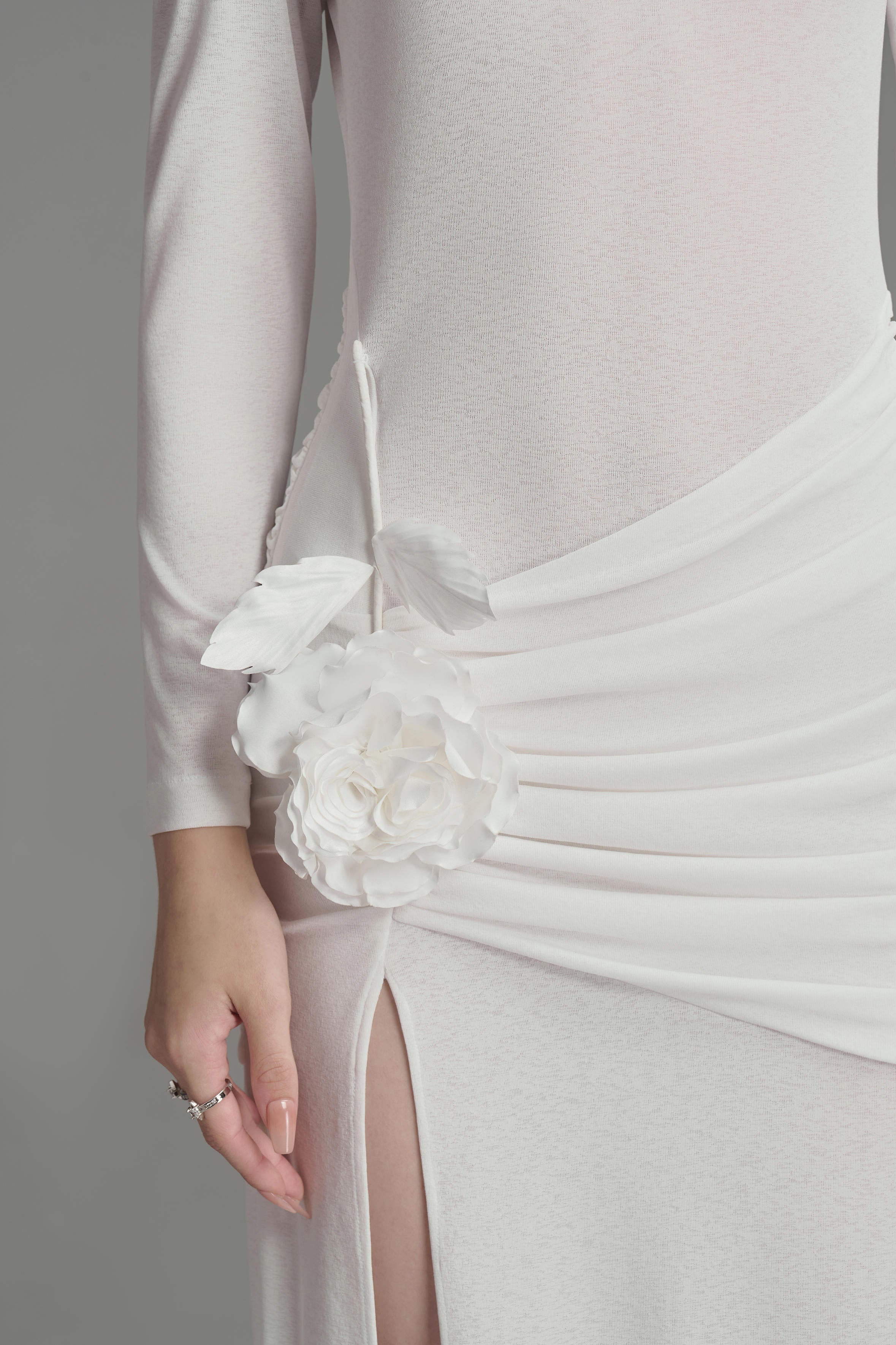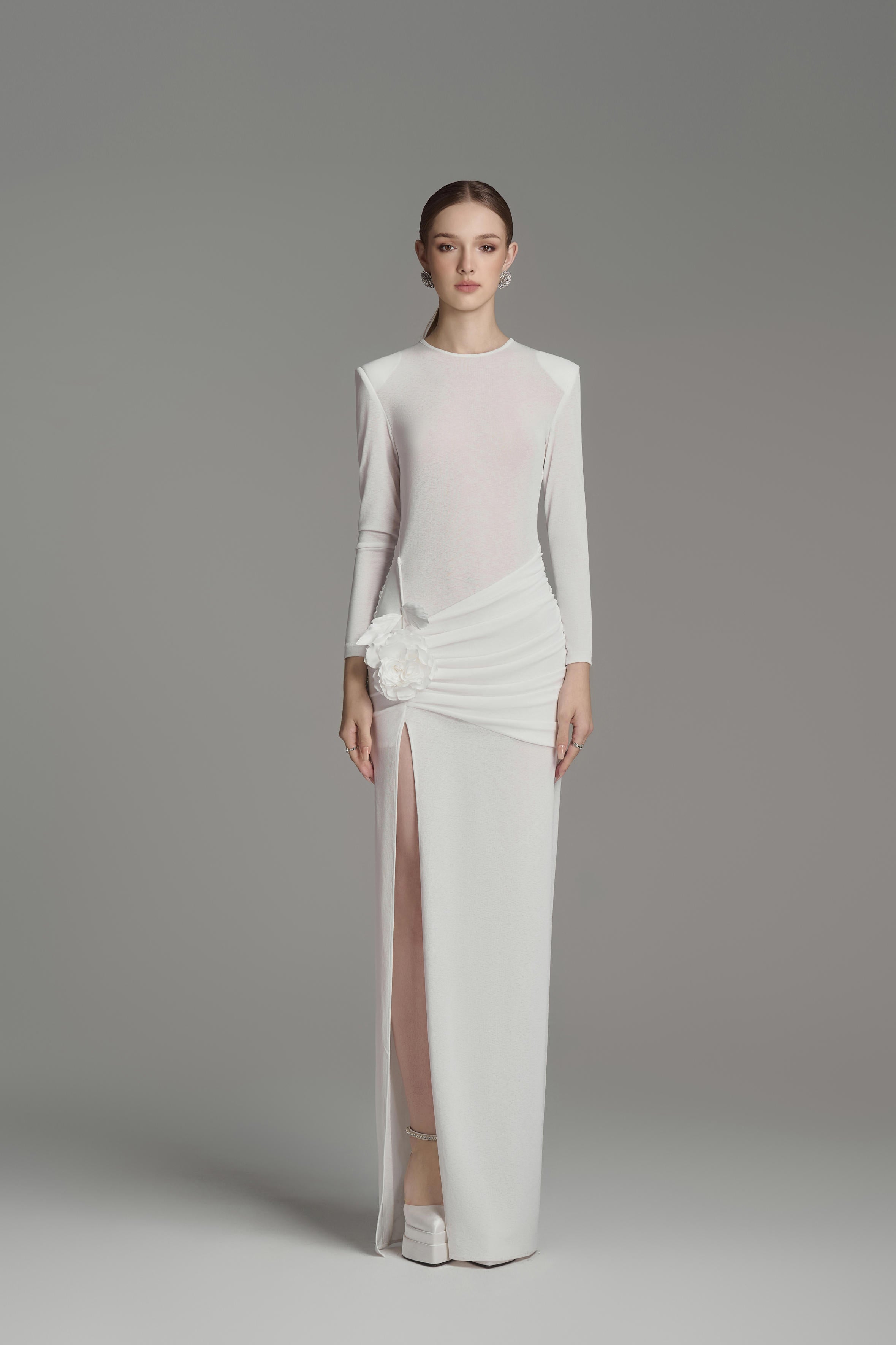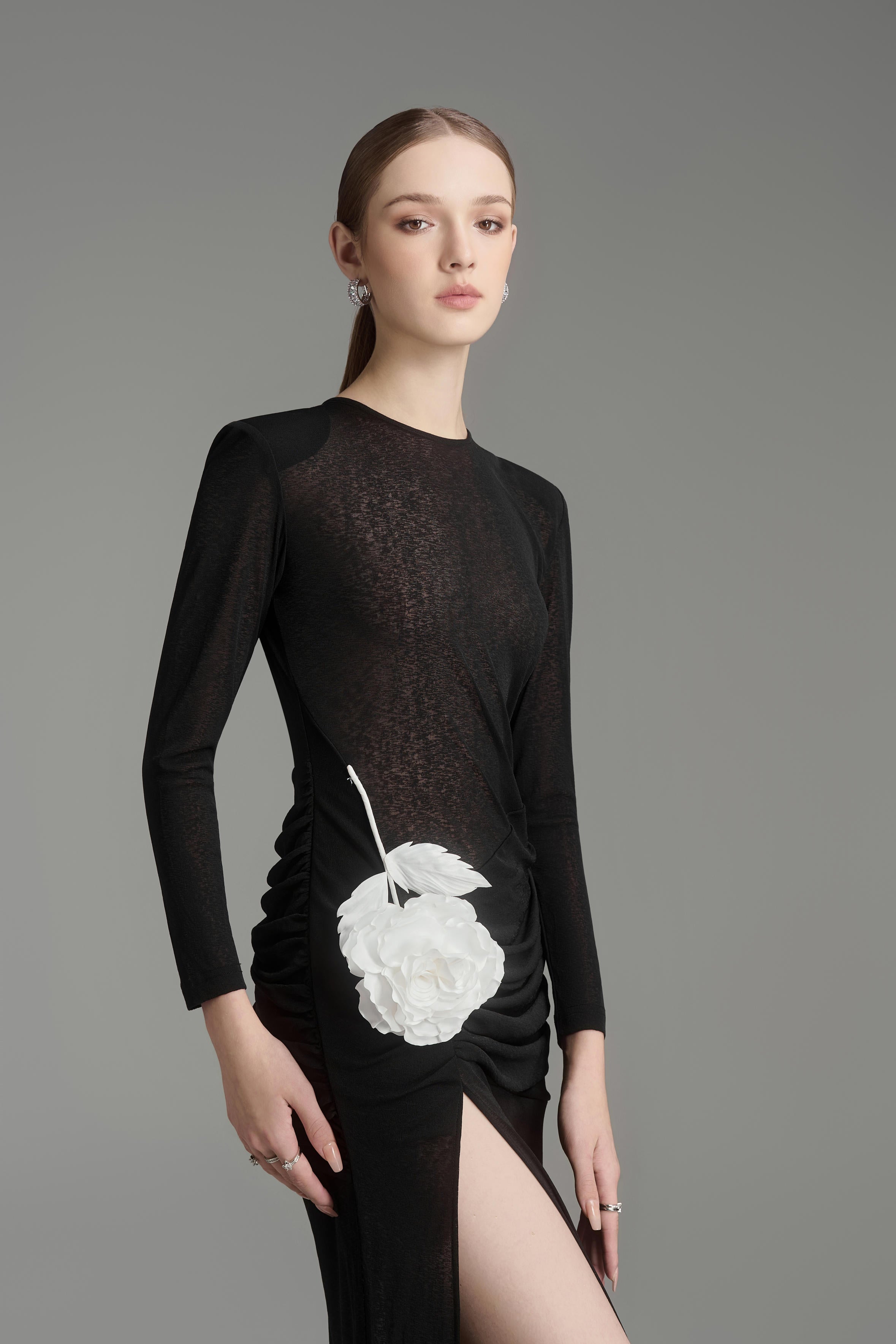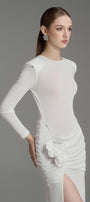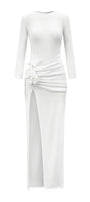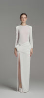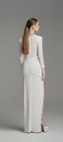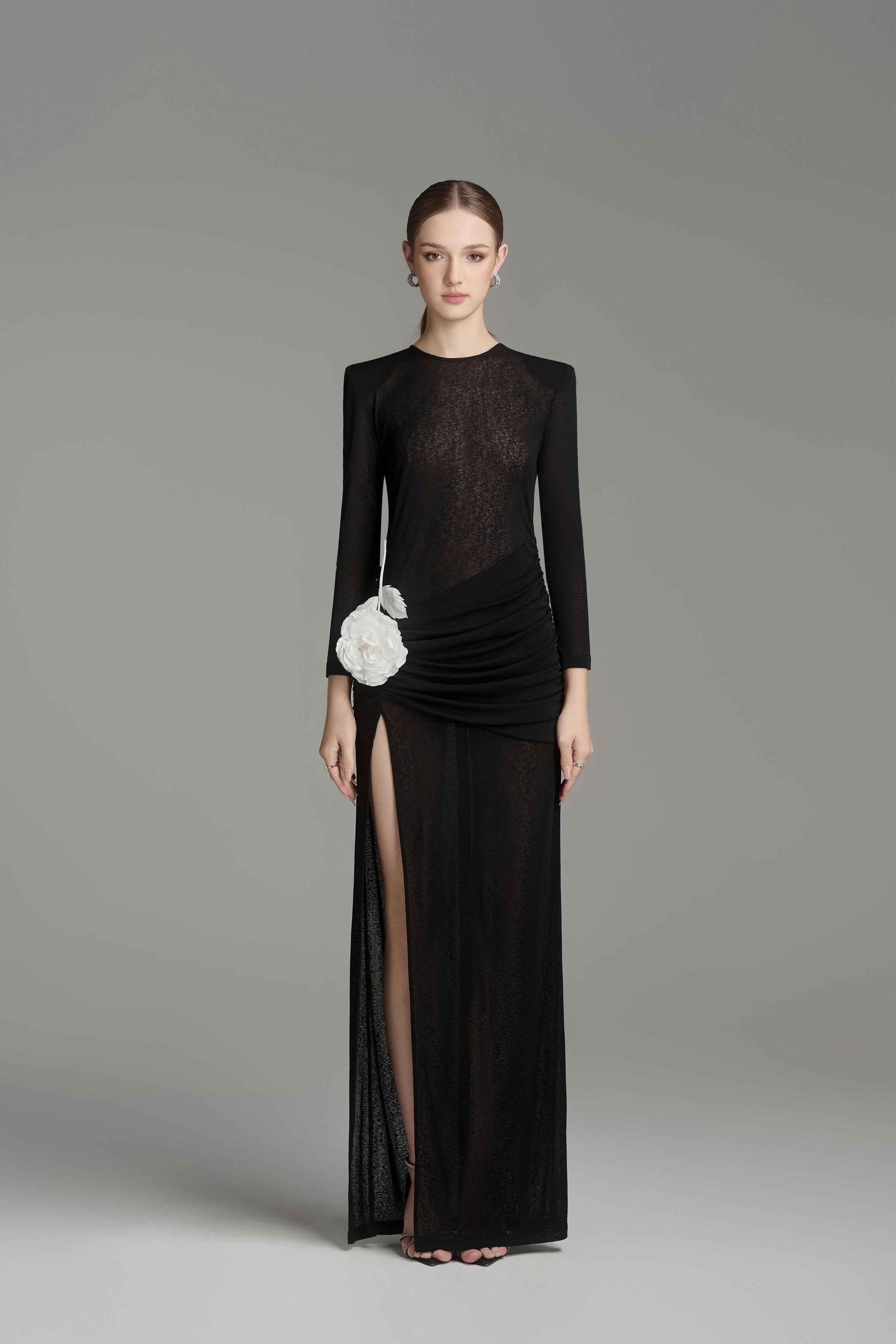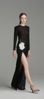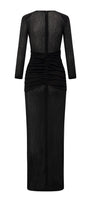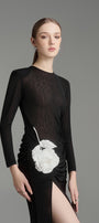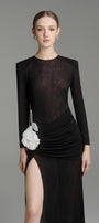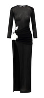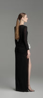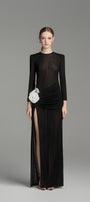 يتميز هذا الفستان بتصميم عصري أنيق بأكمام طويلة وفتحات جانبية وتصميم يصل إلى الأرض. مصنوع من قماش جيرسي عالي الجودة، يوفر الراحة والأناقة. مثالي لأي مناسبة رسمية. ينضح هذا الفستان بالأناقة والرقي.