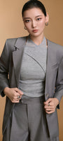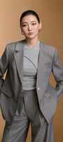 سترة بليزر بياقة غير متماثلة، تتميز بجزء أمامي منسدلة بشكل غير تقليدي، تُذكّر بجاكيت يُلقى على الكتفين. مُزينة بتفاصيل أزرار مخفية وقصة مستقيمة مريحة، تُضفي لمسة جريئة وعفوية، تُمكّن المرأة من التعبير عن شخصيتها بكل سهولة.