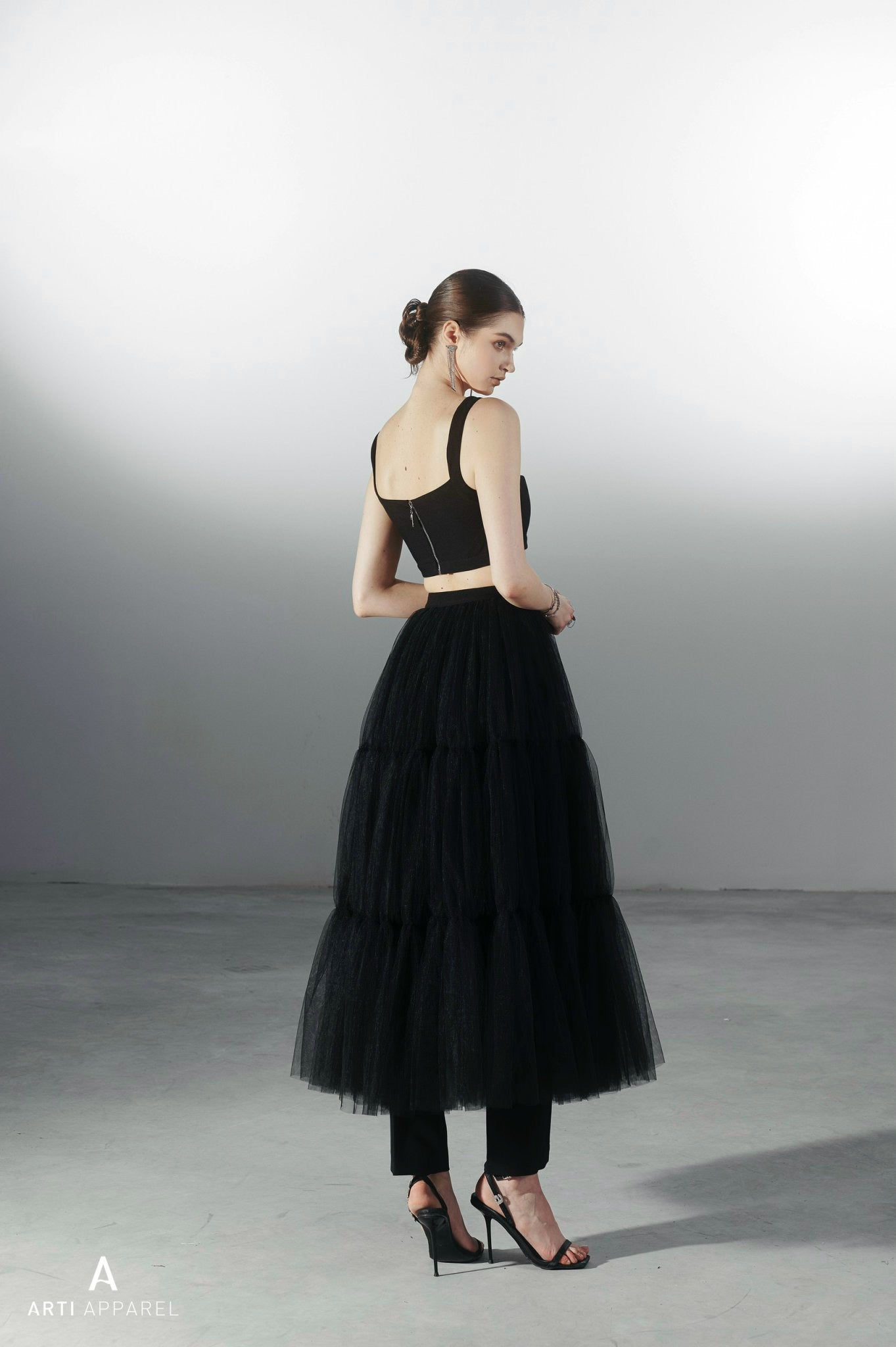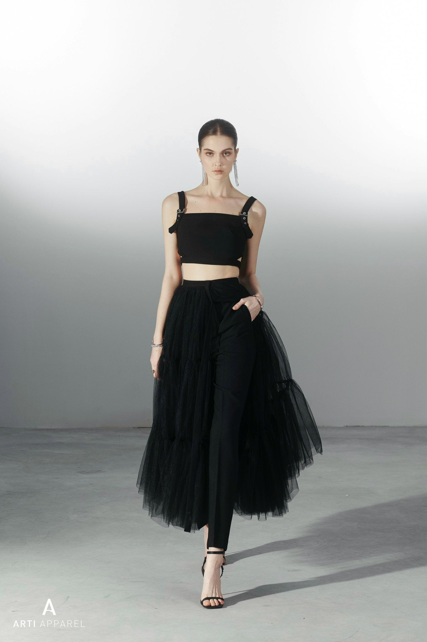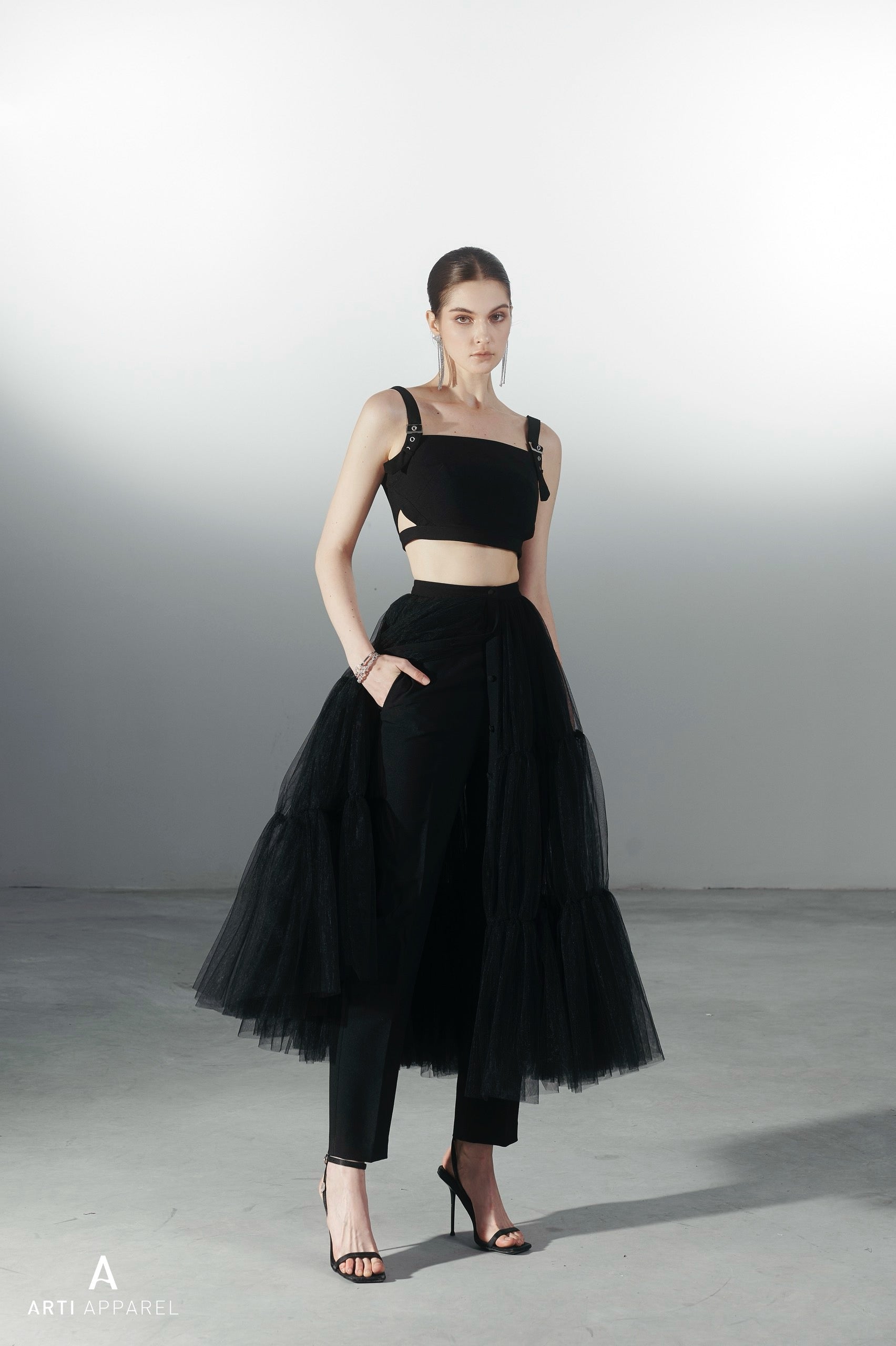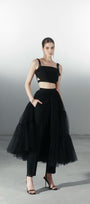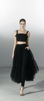 هذه التنورة قطعة أساسية في خزانة ملابسكِ العصرية. مصنوعة من قماش التول الفاخر، وتتميز بطبقات متدرجة وشق أمامي، مما يمنحها إطلالة أنيقة وجريئة. مثالية للمناسبات الخاصة، وتضفي لمسة من الأناقة العصرية على أي إطلالة.
