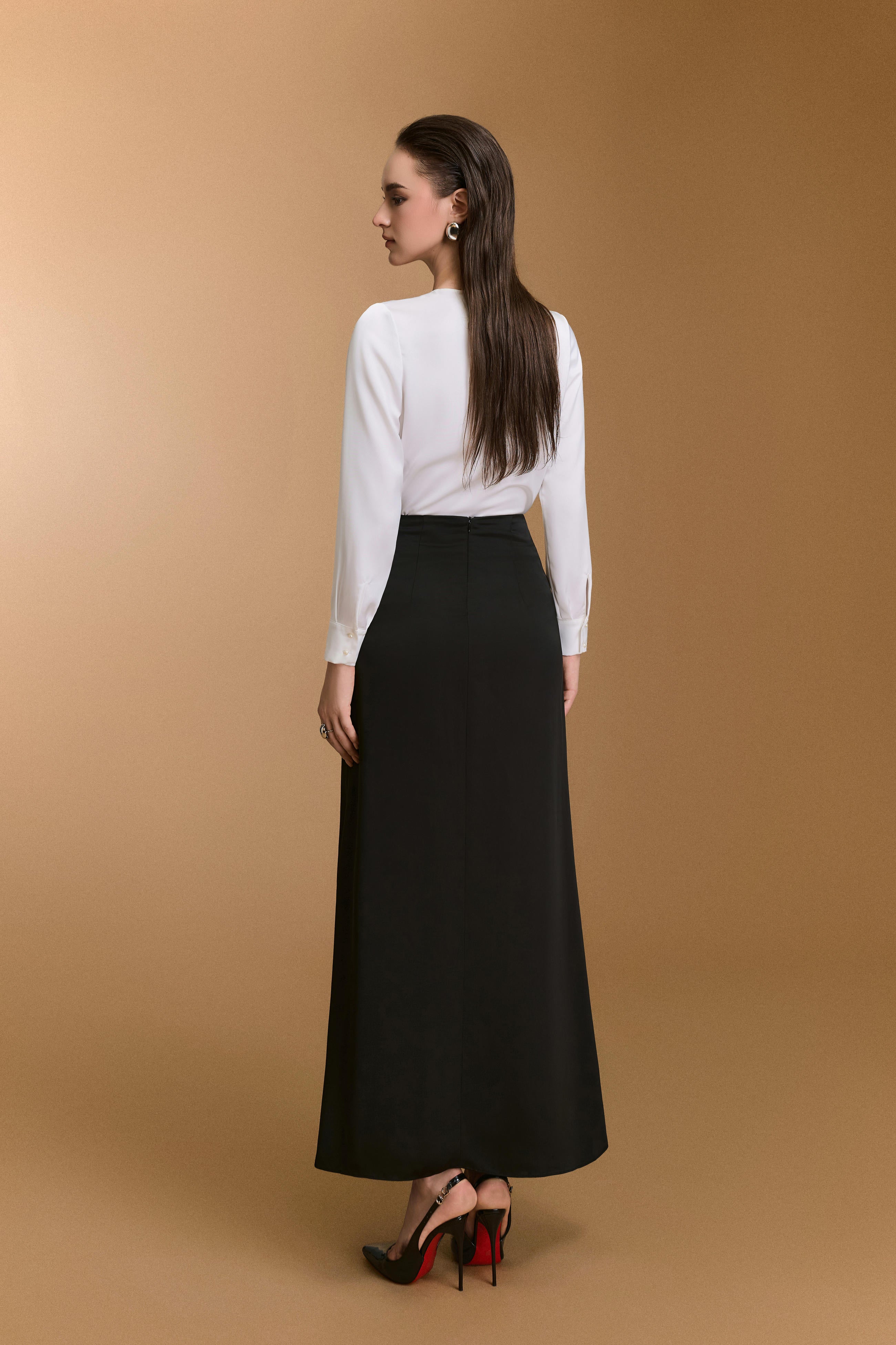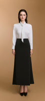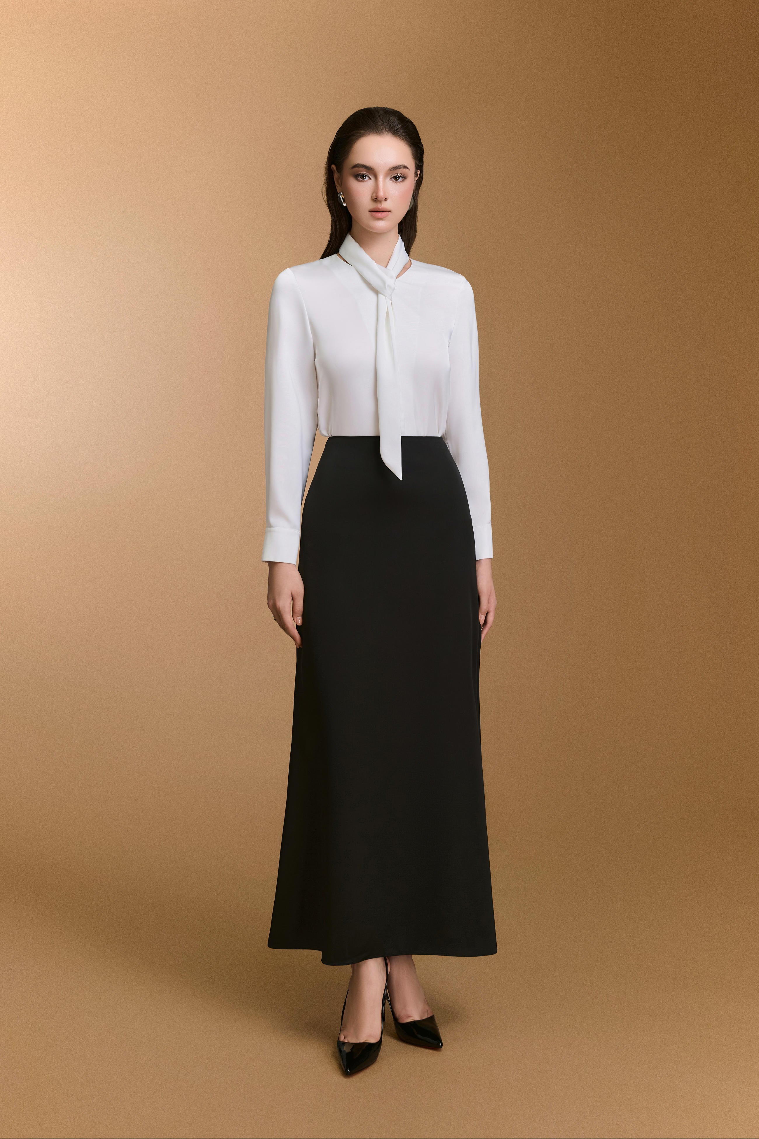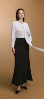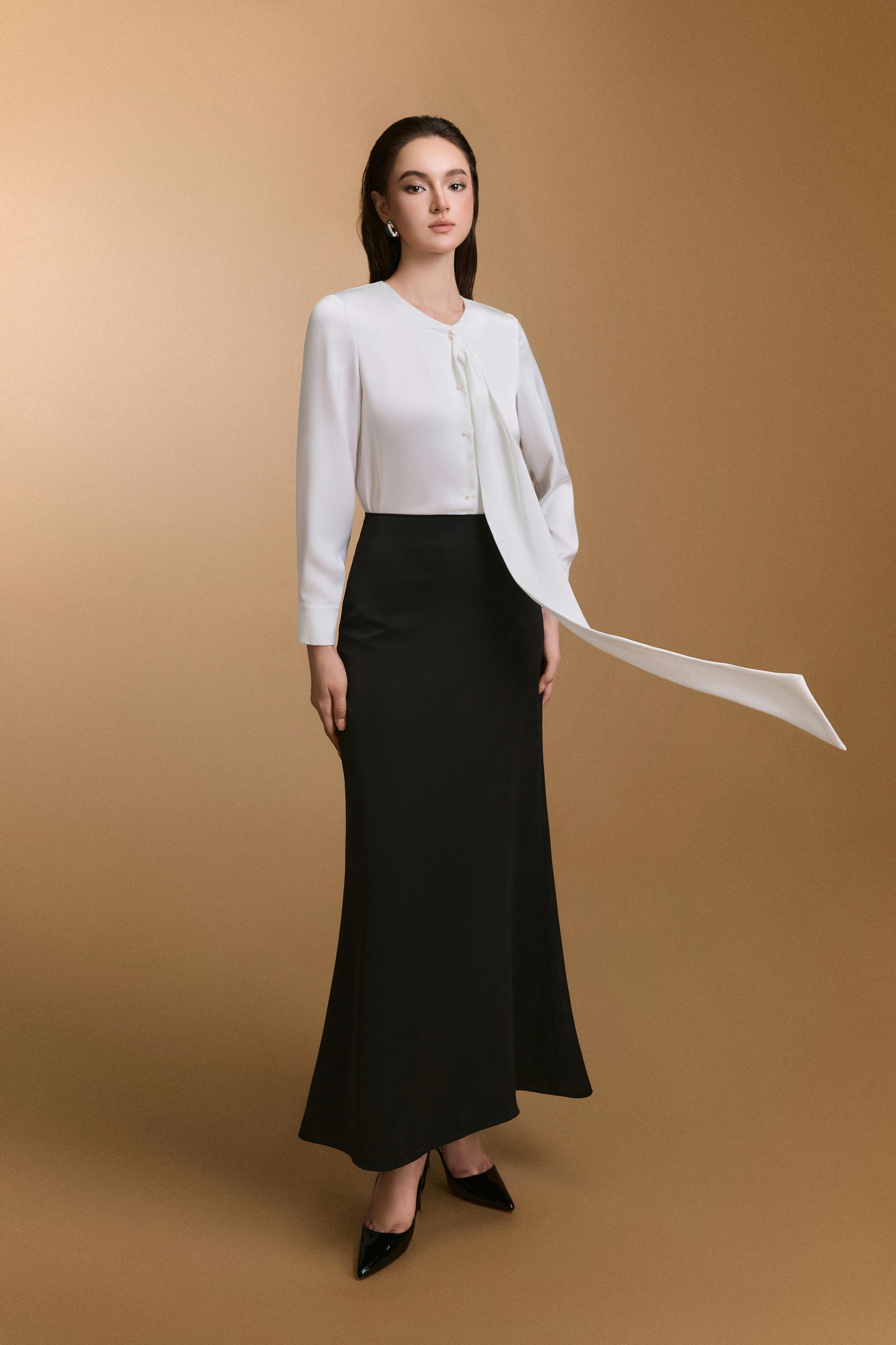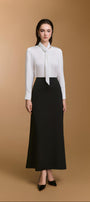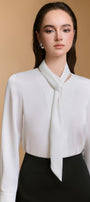 بلوزة مريحة ذات رقبة على شكل حرف V، تتميز بتفاصيل ربطة عنق أنيقة.