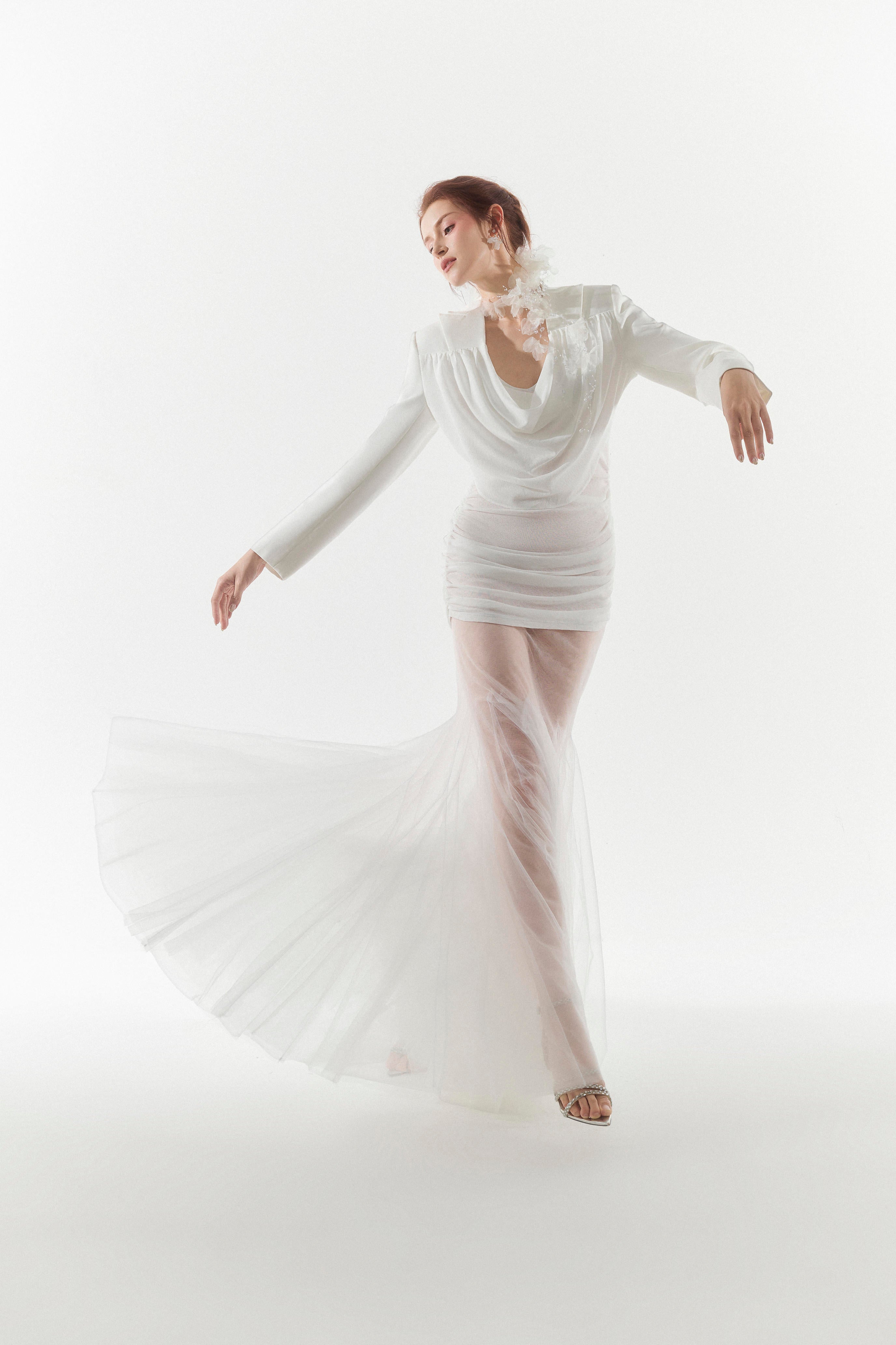 عززي أناقة خزانتكِ مع هذا التوب، الذي يتميز بتصميم فيونكة كبيرة ملفتة تُضفي لمسةً راقية. مصنوع من مزيج حرير فاخر، يوفر هذا التوب ملمسًا ناعمًا ومريحًا، بينما توفر أحزمة الخصر العريضة والأنيقة الدعم والأناقة. مثالي للارتداء مع السراويل ذات الخصر العالي، حيث يجمع بين التصميم الجريء والحرفية الراقية لإطلالة أنيقة واحترافية.