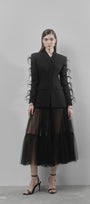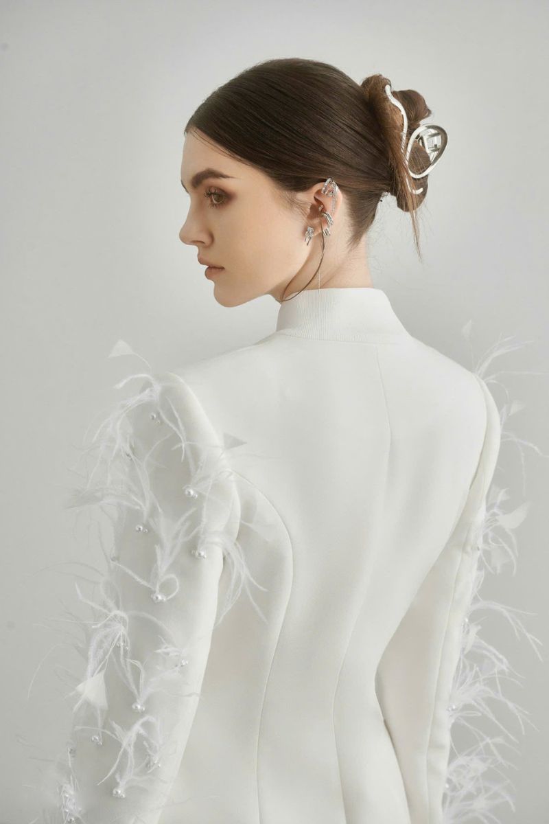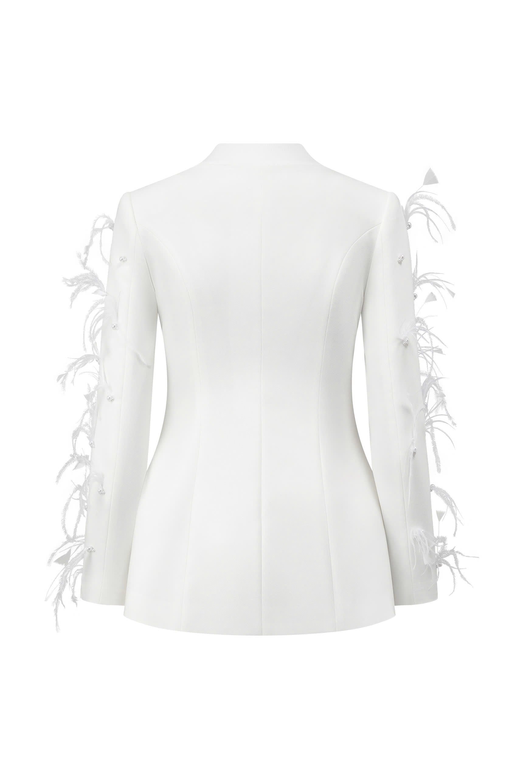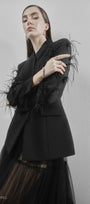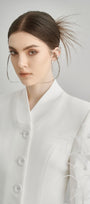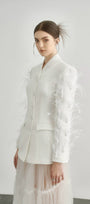 مصنوع من قماش قطني ناعم. هذا البليزر أنيق ومريح. تفاصيل الريش تُضفي لمسة من الأناقة. مثالي لأي مناسبة رسمية أو عمل. ارتقِ بإطلالتك مع هذا البليزر الفاخر ومتعدد الاستخدامات.