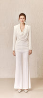 عززي أناقة خزانتكِ مع هذا التوب، الذي يتميز بتصميم فيونكة كبيرة ملفتة تُضفي لمسةً راقية. مصنوع من مزيج حرير فاخر، يوفر هذا التوب ملمسًا ناعمًا ومريحًا، بينما توفر أحزمة الخصر العريضة والأنيقة الدعم والأناقة. مثالي للارتداء مع السراويل ذات الخصر العالي، حيث يجمع بين التصميم الجريء والحرفية الراقية لإطلالة أنيقة واحترافية.