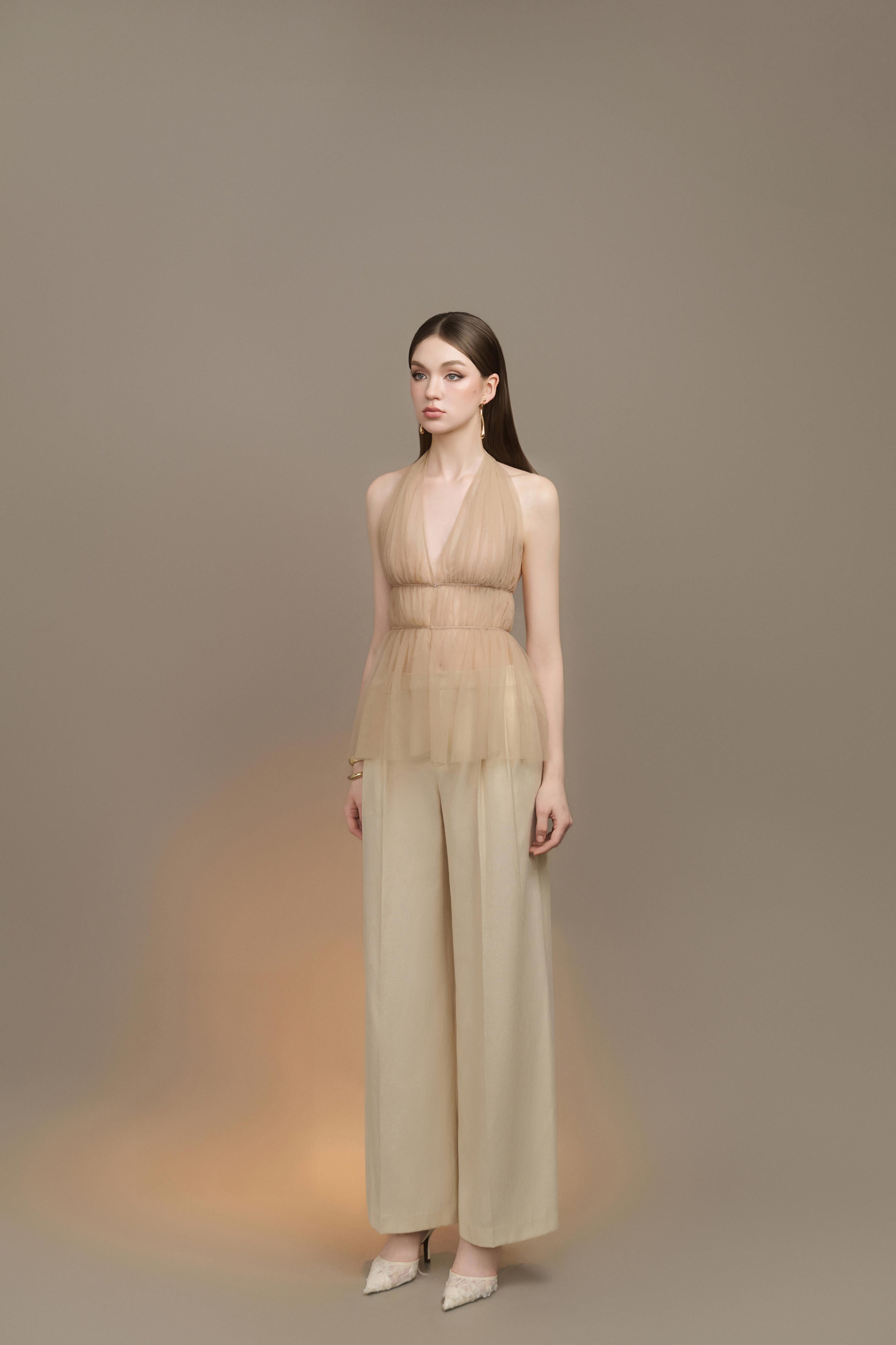عززي أناقة خزانتكِ مع هذا التوب، الذي يتميز بتصميم فيونكة كبيرة ملفتة تُضفي لمسةً راقية. مصنوع من مزيج حرير فاخر، يوفر هذا التوب ملمسًا ناعمًا ومريحًا، بينما توفر أحزمة الخصر العريضة والأنيقة الدعم والأناقة. مثالي للارتداء مع السراويل ذات الخصر العالي، حيث يجمع بين التصميم الجريء والحرفية الراقية لإطلالة أنيقة واحترافية.