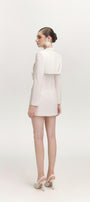 عززي أناقة خزانتكِ مع هذا التوب، الذي يتميز بتصميم فيونكة كبيرة ملفتة تُضفي لمسةً راقية. مصنوع من مزيج حرير فاخر، يوفر هذا التوب ملمسًا ناعمًا ومريحًا، بينما توفر أحزمة الخصر العريضة والأنيقة الدعم والأناقة. مثالي للارتداء مع السراويل ذات الخصر العالي، حيث يجمع بين التصميم الجريء والحرفية الراقية لإطلالة أنيقة واحترافية.