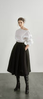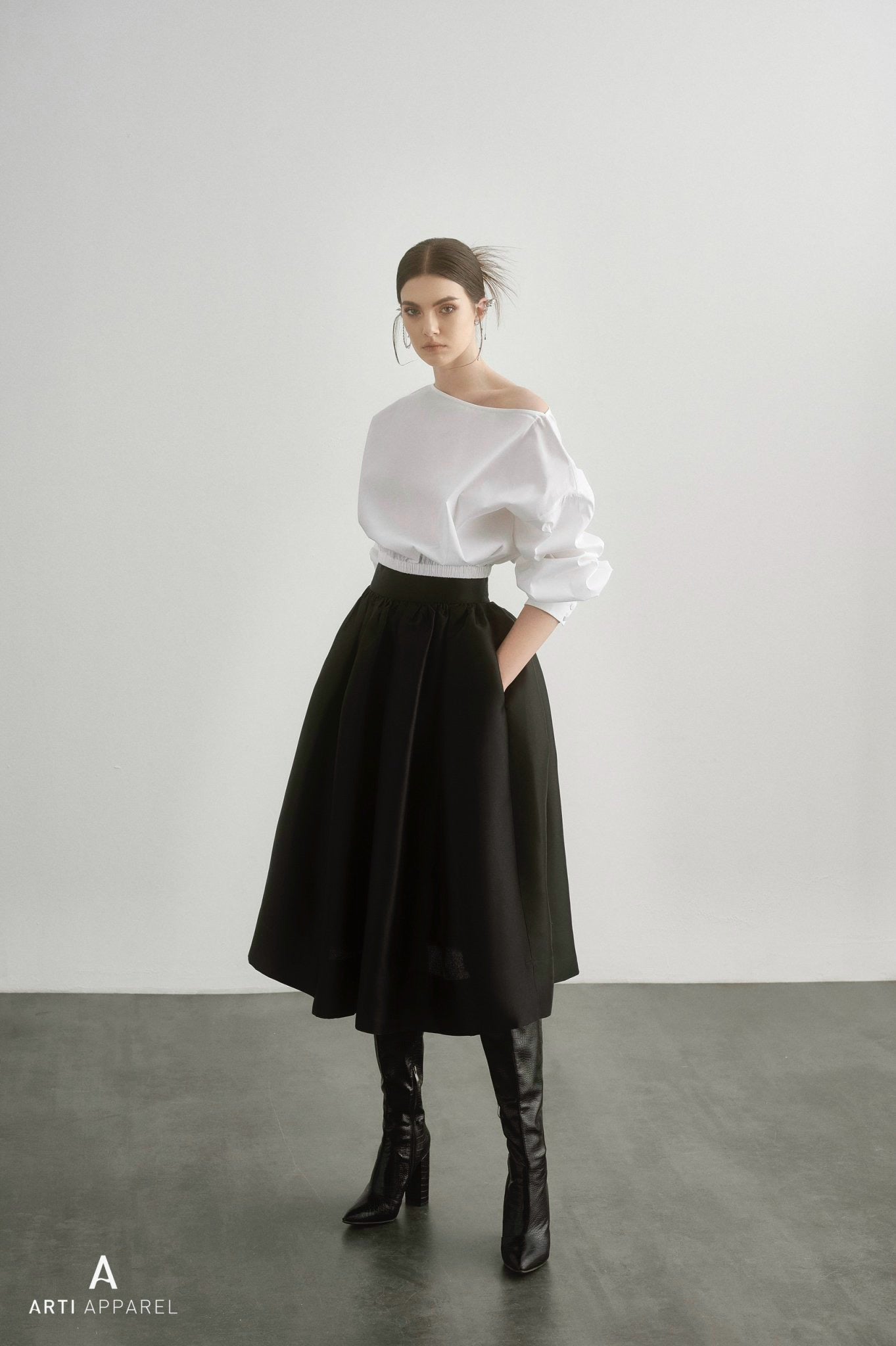 مصنوع من قماش التفتا. فستان ضيق بخصر عالٍ ومشدود يُبرز شكل الجسم. مثالي لأي مناسبة. هذه التنورة ستُضفي لمسةً مميزة على خزانة ملابسك بتصميمها الناعم والمتعدد الاستخدامات.
