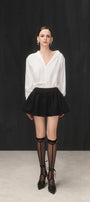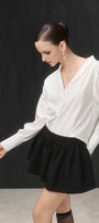 عززي أناقة خزانتكِ مع هذا التوب، الذي يتميز بتصميم فيونكة كبيرة ملفتة تُضفي لمسةً راقية. مصنوع من مزيج حرير فاخر، يوفر هذا التوب ملمسًا ناعمًا ومريحًا، بينما توفر أحزمة الخصر العريضة والأنيقة الدعم والأناقة. مثالي للارتداء مع السراويل ذات الخصر العالي، حيث يجمع بين التصميم الجريء والحرفية الراقية لإطلالة أنيقة واحترافية.