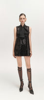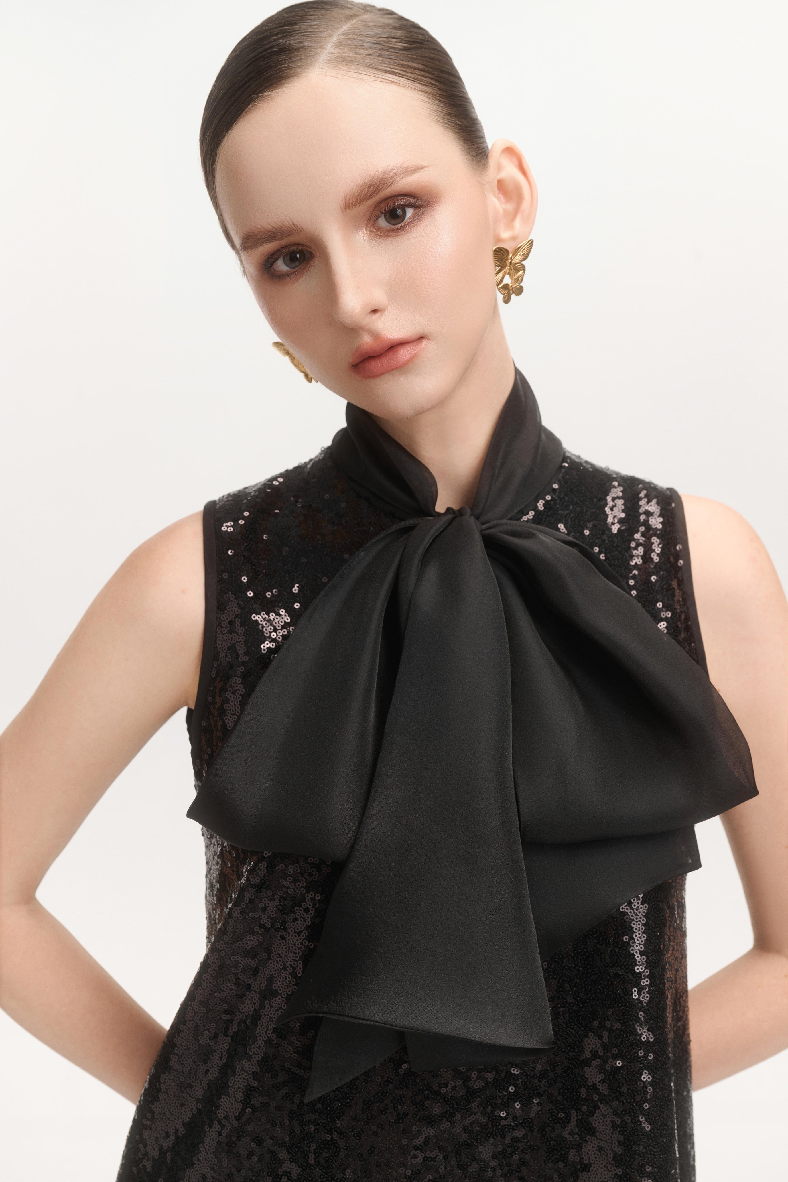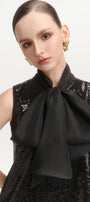 عززي أناقة خزانتكِ مع هذا التوب، الذي يتميز بتصميم فيونكة كبيرة ملفتة تُضفي لمسةً راقية. مصنوع من مزيج حرير فاخر، يوفر هذا التوب ملمسًا ناعمًا ومريحًا، بينما توفر أحزمة الخصر العريضة والأنيقة الدعم والأناقة. مثالي للارتداء مع السراويل ذات الخصر العالي، حيث يجمع بين التصميم الجريء والحرفية الراقية لإطلالة أنيقة واحترافية.